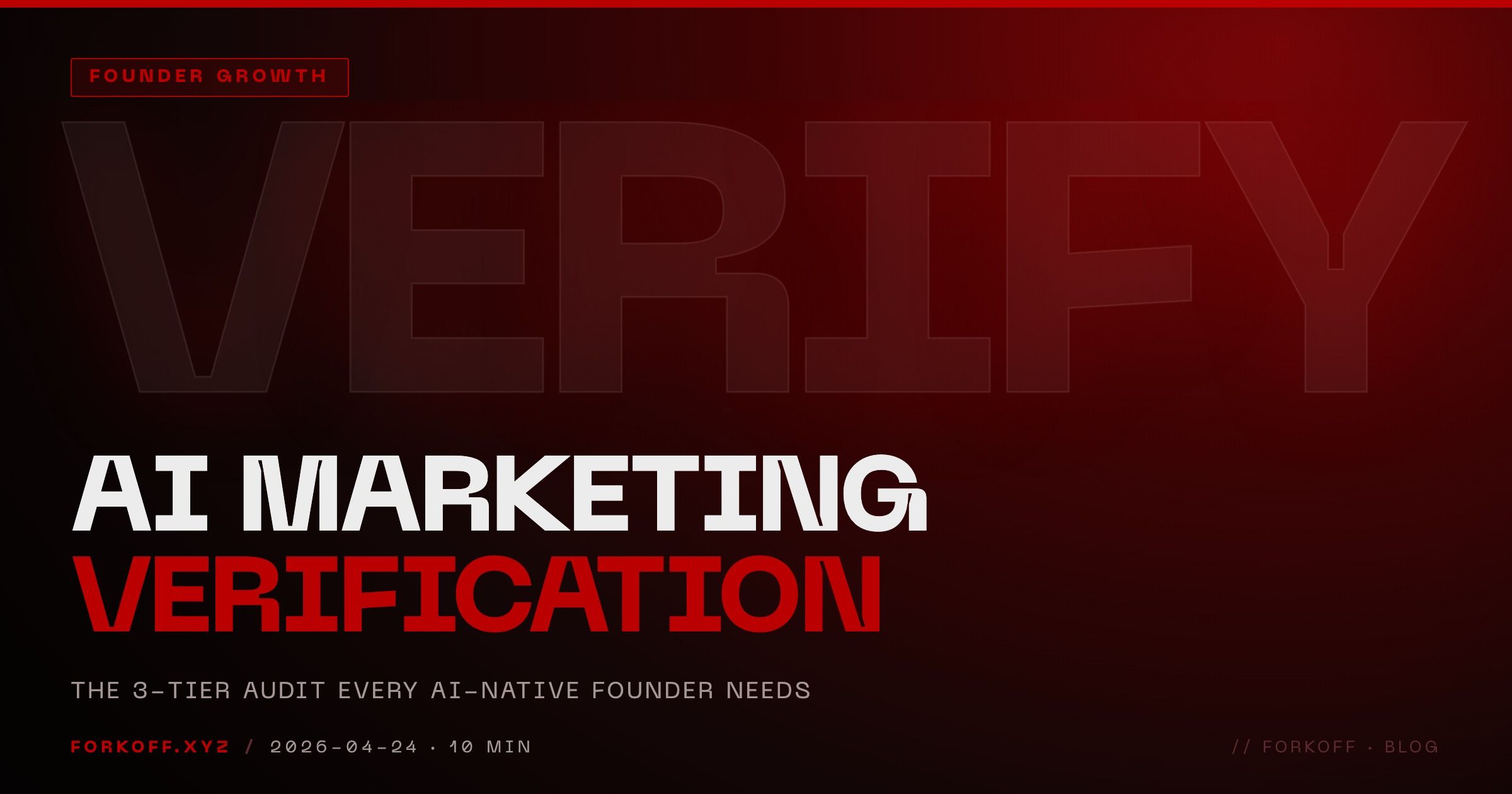 FORKOFF runs agent-native marketing with built-in 3-tier verification for founder-growth, ecosystem, and clipping clients. Book a 30-min positioning call.